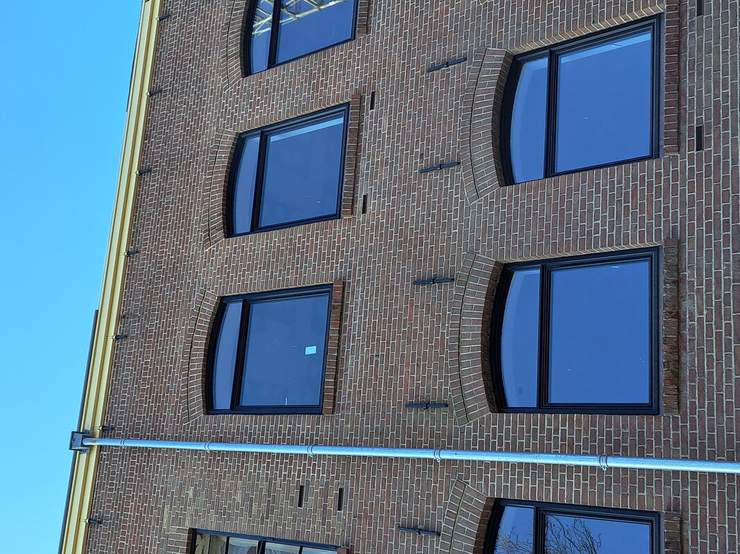 Voor dit project worden de gebogen profielen geleverd aan de klant, die de assemblage van de kozijnen zelf verzorgt. Het interne buigproces biedt daarnaast ook praktische voordelen. “Wanneer profielen extern worden gebogen, bestaat het risico dat er spanningen of kleine breukjes in de coating ontstaan,” zegt Mulders. “Omdat wij pas na het buigen poedercoaten, vermijden we dat probleem en verkleinen we de kans op beschadigingen aanzienlijk.”