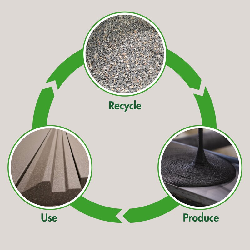 Holonite heeft een gesloten kringloop ontwikkeld door gebruikte en restelementen van composietsteen te vermalen en opnieuw te verwerken tot een hoogwaardige basisgrondstof. Daarmee maken we de levensduur van composietsteen in feite oneindig.