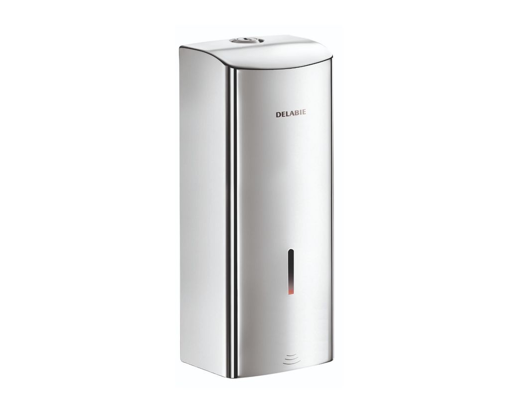 Op het oppervlak van een stuk zeep kunnen potentieel ook bacteriën en virussen achterblijven. Vloeibare zeep en antibacteriële gel krijgen dus de voorkeur en zijn de laatste tijd een noodzakelijk goed geworden. Voor een effectieve handhygiëne moet de zeepdispenser betrouwbaar en gemakkelijk te bedienen zijn. Er wordt trouwens ook aangeraden de drukknop van een zeepverdeler met mechanische bediening regelmatig te reinigen. Een elektronische zeepautomaat vormt dus de ideale, handenvrije oplossing voor maximale hygiëne. De batterijbediende dispenser van DELABIE werkt zowel met zeep of gel en levert bij elke activering een optimale dosis (0,8 ml) die beperkt kan worden tot maximaal 7 doseringen per gebruik als de gebruiker iets te enthousiast wordt. Bovendien zijn de DELABIE-zeepverdelers eenvoudig bij te vullen dankzij een brede opening.