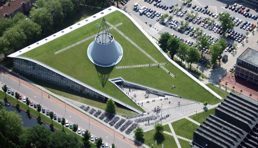 En sindsdien genieten studenten, omwonenden en bezoekers, dag in dag uit, van dit indrukwekkend groendak van 5.500 m2.