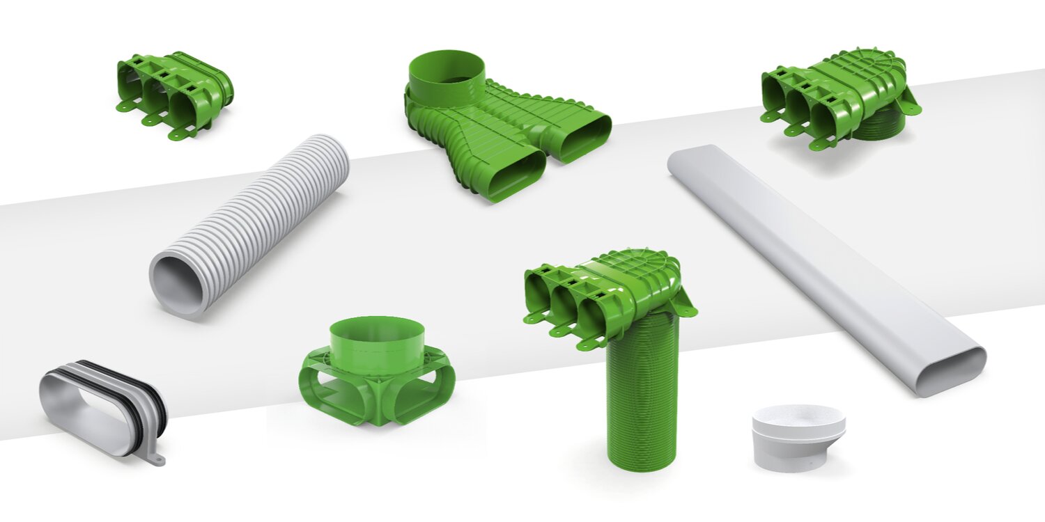 DUCO neemt installateurs de zorg uit handen door nu ook DucoFlex-luchtkanalen aan te bieden. Het nieuwe luchtkanalensysteem is zeer installatievriendelijk dankzij het handige 'Click & Go'-principe en het beperkt aantal benodigde hulpstukken.