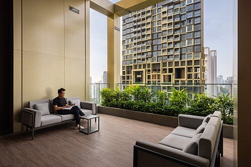 ADDP Architects, geeft MVRDV’s kleurrijke gevel de torens identiteit en benadrukt deze de groene gemeenschappelijke ruimtes op de 24e verdieping en het dak. Het project toont opnieuw aan dat efficiëntie en kosteneffectiviteit prima samengaan met karakter en individualiteit binnen het oeuvre van MVRDV.