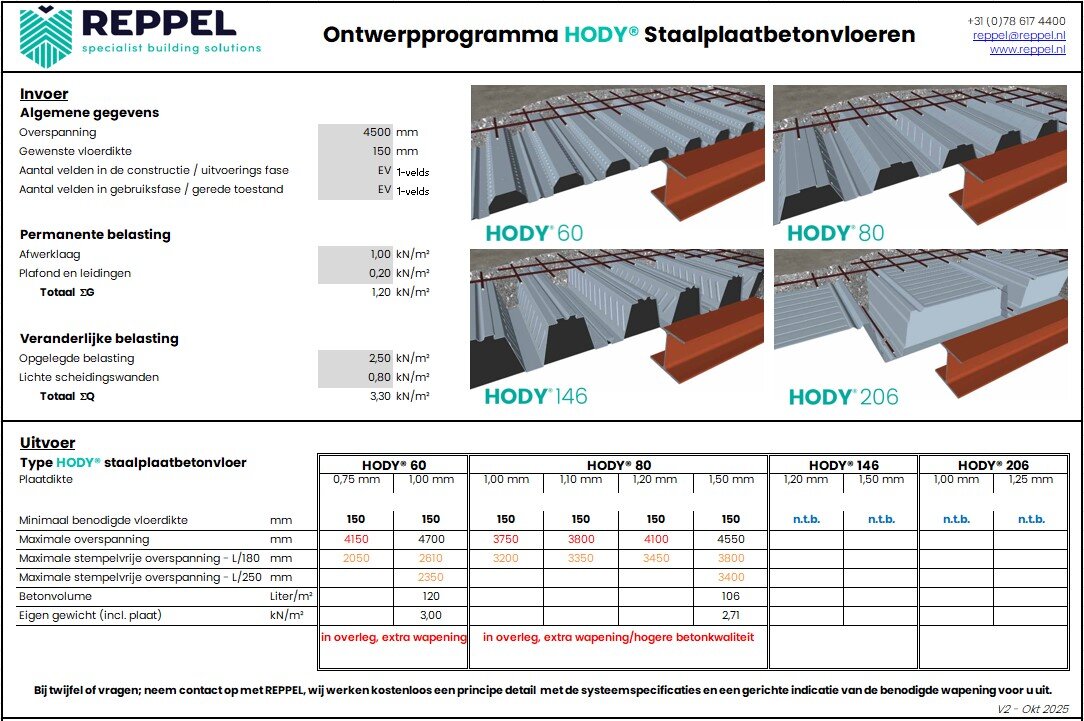 Staalplaatbetonvloerspecialist REPPEL b.v. heeft nu via hun website een ontwerpprogramma voor staalplaatbetonvloeren beschikbaar.