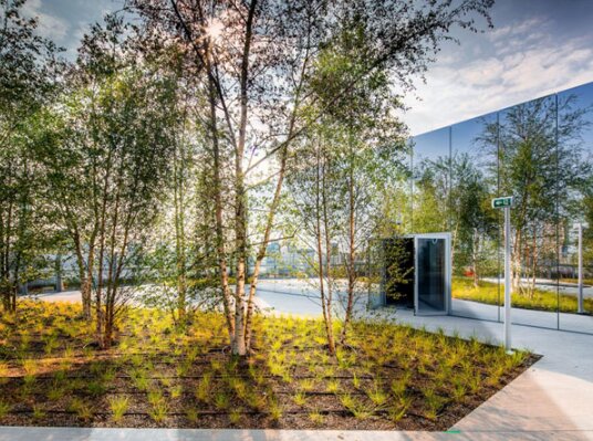Een spraakmakend voorbeeld van een groendak waar ook in droge tijden nog voldoende water verdampt is het dak op het depot van Boijmans Van Beuningen in Rotterdam.
