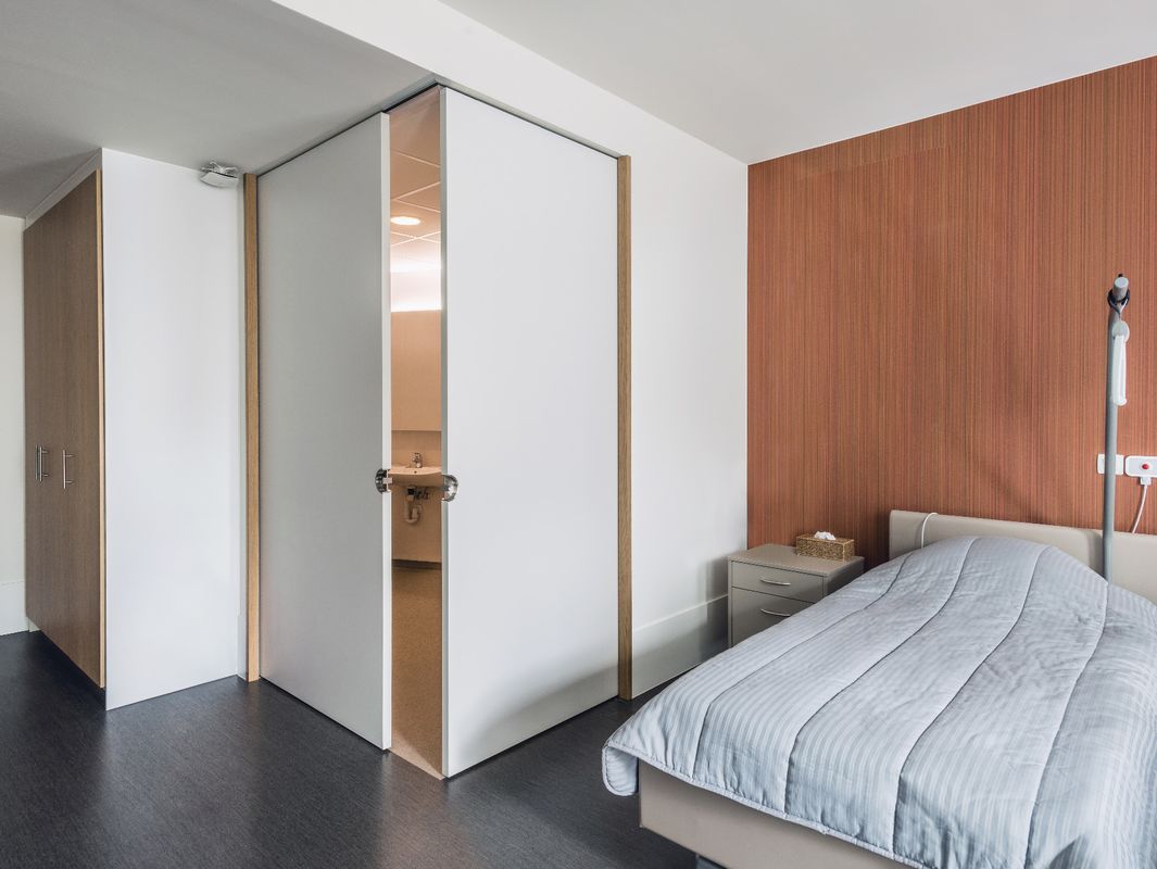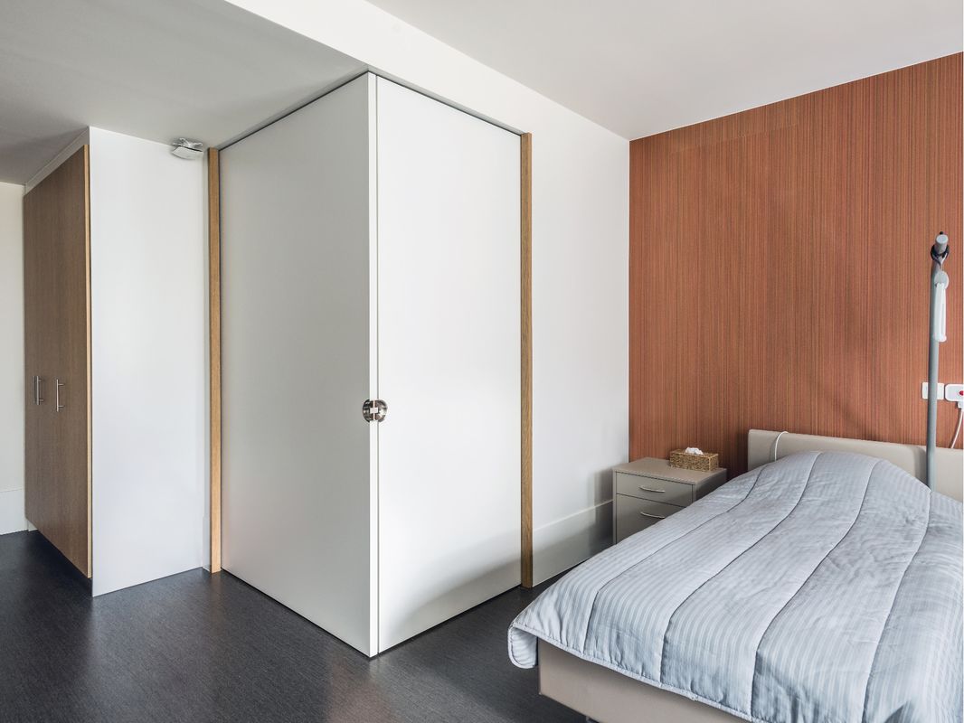 Ook Wim Dens was al snel voor deze innovatie gewonnen. ‘Het is heel interessant te kunnen kiezen voor ofwel maar één schuifdeur, of de mogelijkheid beide schuifdeuren te openen zonder dragend profiel, kolom of steun in de hoek. Vooral voor andersvaliden is dat comfortabel. Bovendien kan je met beide schuifdeuren de deuropening maximaal benutten. Op die manier beschikt het verpleegkundig personeel over heel wat ruimte om bedlegerige mensen in de sanitaire cel te verzorgen.'