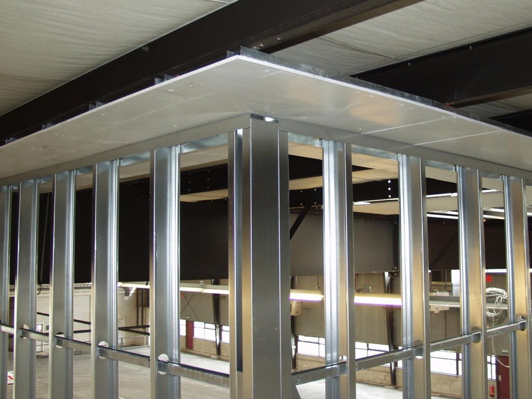 ‘Het aantal hoge bedrijfshallen, waarin vaak ook de kantoren van een onderneming zijn geïntegreerd, zit al een tijdje sterk in de lift’, zegt Rob Van Baelen, communicatiemanager bij Promat. ‘Ook voor dergelijke gebouwen is het natuurlijk essentieel dat ze inzake brandwerendheid volledig voldoen aan de Nederlandse regelgeving. Voor de compartimentering van bedrijfshallen (in ‘subbrand’- en brandcompartimenten) kunnen we met ons systeem een oplossing bieden.’ Promat®-SYSTEMWALL bestaat uit een gegalvaniseerd stalen roosterwerk met aan beide zijden een dubbele laag PROMATECT ®-platen. ‘Dit systeem is heel geschikt voor het bouwen van hoge, lichte en gemakkelijk te demonteren wanden waaraan hoge brandwerendheidseisen gesteld worden’, vult Johan Bijvank, productmanager bij Promat, aan. ‘Het gaat om een kruisconstructie, wat voor een optimale verdeling van de krachten zorgt.’