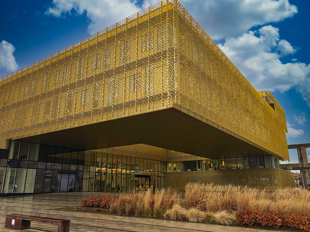 Alucol heeft voor het hoofdkantoor van CMI in Seraing bij onze zuiderburen de aluminium gevel geanodiseerd in de goudkleur VOM3.