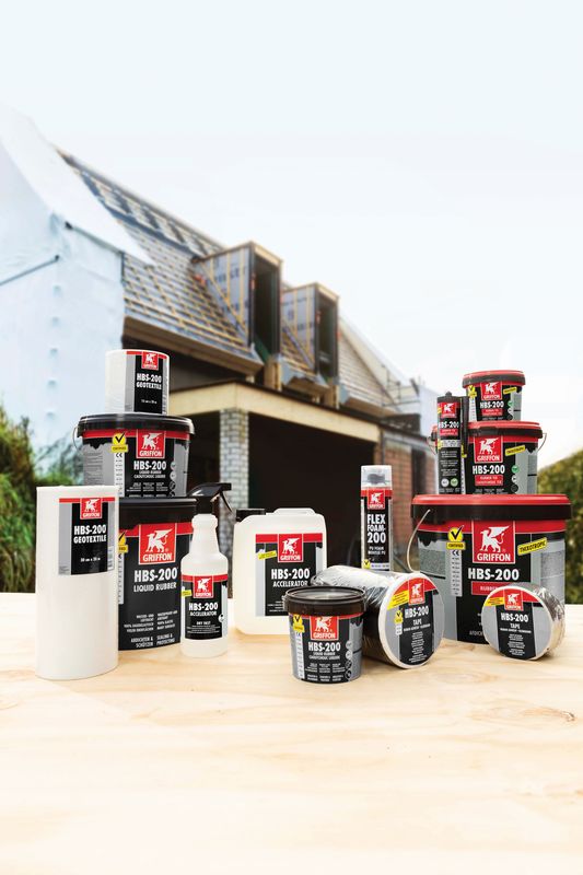 Voor luchtdicht bouwen gebruiken wij de producten Griffon HBS-200 Liquid Rubber en FlexFoam-200.
