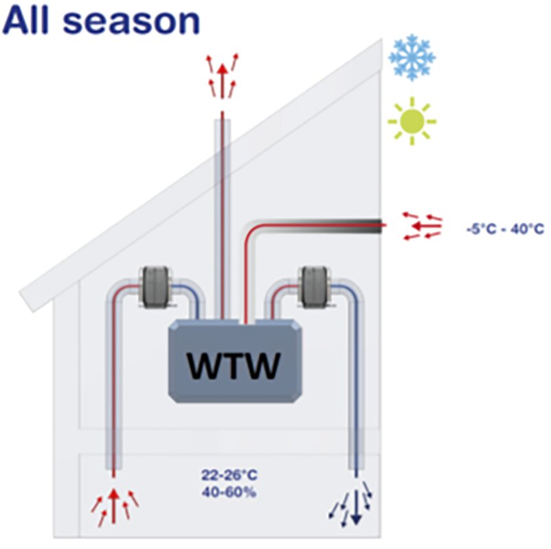 In de winter kan de luchtvochtigheid in goed geïsoleerde woningen dalen tot onder het gezonde bereik van 40-60% (bron: WHO), wat kan leiden tot gezondheidsproblemen zoals droge huid, geïrriteerde luchtwegen en een verhoogd risico op infecties.
