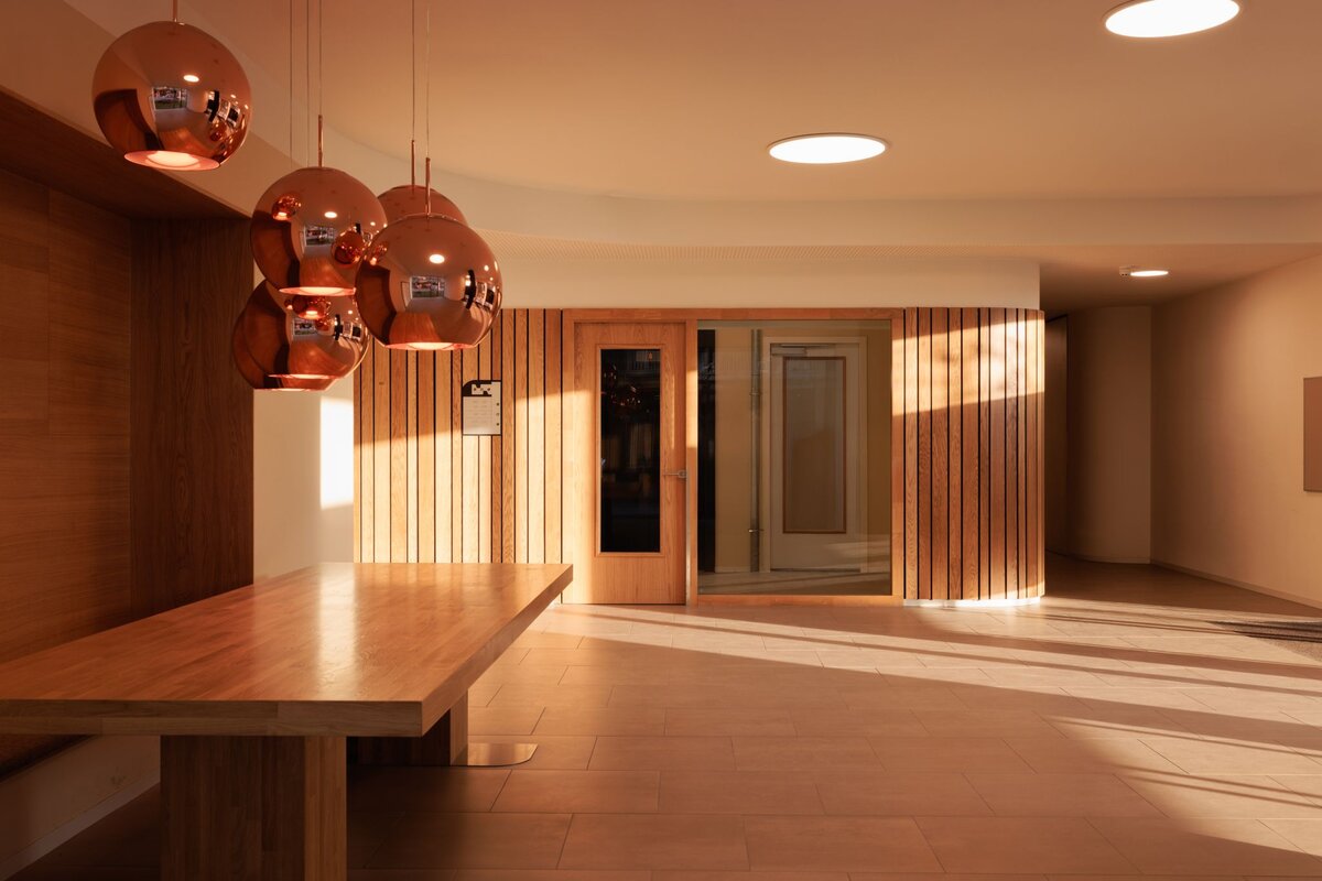 In opdracht van Amvest ontwierp Orange Architects dit bakstenen woongebouw in de wijk Overhoeks in Amsterdam-Noord. Het project omvat 67 huur- en 41 koopappartementen, gelegen aan de noordelijke oever van het IJ, direct tegenover het Centraal Station van Amsterdam. Deze dynamische, gemengde wijk combineert de nabijheid van het stadscentrum met een diverse campusachtige indeling waar groene ruimtes en gebouwen elkaar afwisselen, waardoor een aantrekkelijke leefomgeving ontstaat.