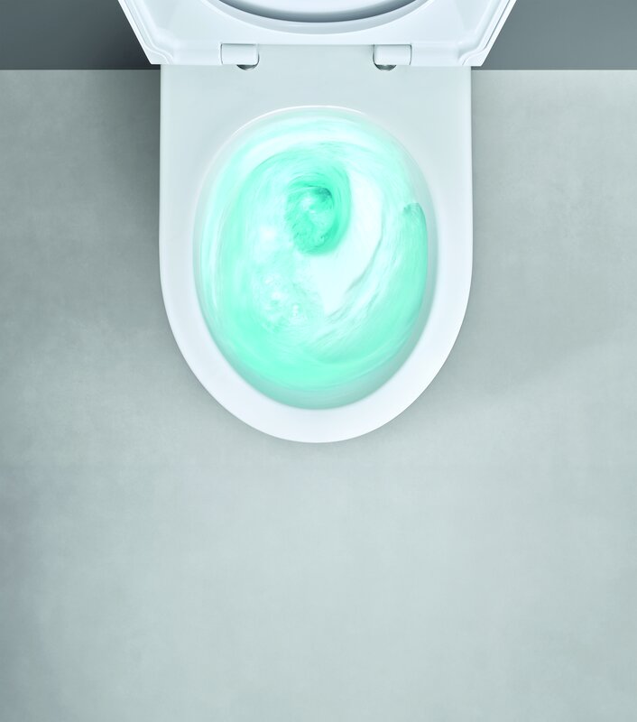 Een belangrijk onderdeel van deze innovatie is de TurboFlush-technologie, waarbij de asymmetrische binnenvorm van het keramiek het spoelwater in een krachtige, spiraalvormige stroming door het toilet leidt. Daardoor is één enkele spoeling vaak al voldoende en goed voor miljoenen liters waterbesparing per jaar.