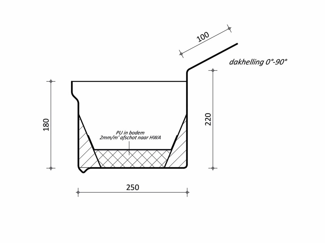 “Bij diverse dakgootsystemen, zoals zinken en getrokken aluminium dakgoten, kan dit afschot worden bereikt door de ophangbeugels waarin de goten komen te liggen, op afschot te monteren”, aldus Beers. “Helaas komt dit de uitstraling van een gebouw echter niet ten goede. Zeker wanneer de afvoer aan het uiteinde van de goot is aangebracht, wordt de gevellijn door een ‘scheef hangende dakgoot’ flink verstoord. Als de afvoer in het midden van een goot moet komen, wordt het helemaal een lastig verhaal als je dit op afschot wilt doen want dat zou betekenen dat er een knik in de goot moet komen en daar lenen de meeste materialen zich niet voor. Voor deze situaties heeft Beers Bouwproducten een gootsysteem ontwikkeld, waarbij het afschot in de goot zelf geïntegreerd is. Hierdoor kunnen afnemers profiteren van de voordelen van een geprefabriceerde, polyester dakgoot, die tevens aan alle functionele én esthetische wensen met betrekking tot het afschot voldoet.”