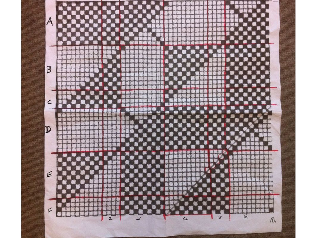 Om het goed te doen, dient een dergelijk patroon dus altijd in een veelvoud van een paneel van 120x120cm besteld te worden. Het paneel is opgebouwd uit 4x4 vellen van 30x30cm.