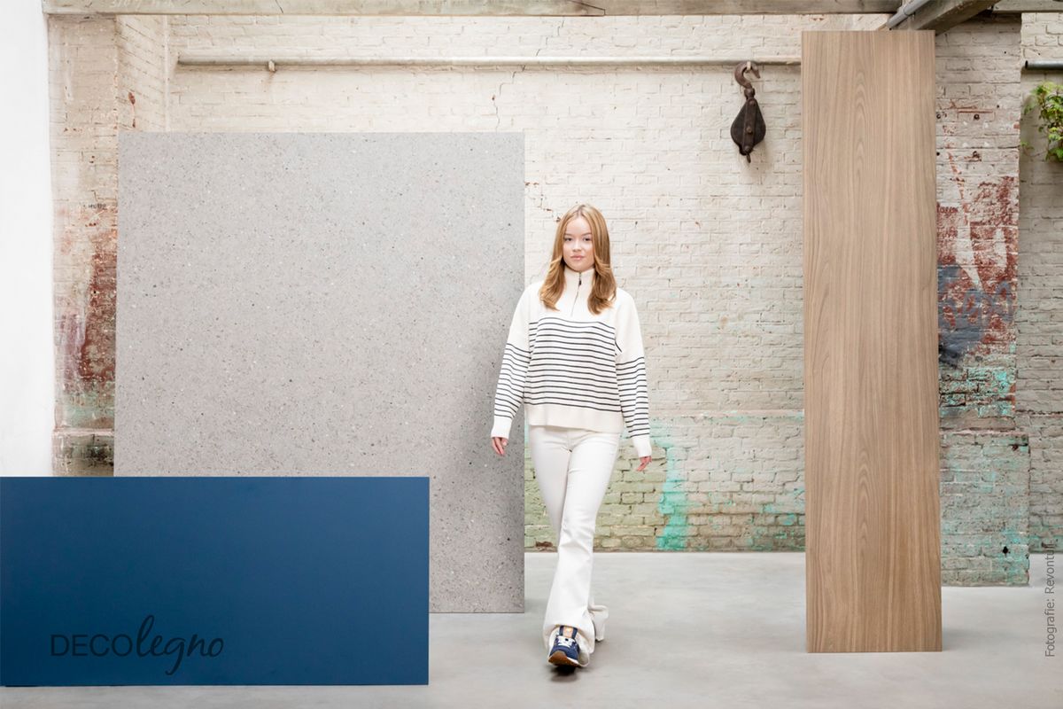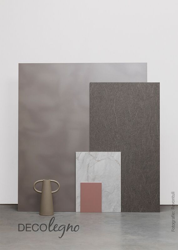 Door de grote variatie in de collectie decoratief plaatmateriaal van DecoLegno kun je eindeloos combineren. Decors en structuren kunnen elkaar versterken en daarmee het ontwerp naar een hoger niveau brengen. Daarmee wordt de kracht van maatwerk onderstreept. De nieuwe texturen lenen zich hier bij uitstek voor. Combineer het terrazzo decor (FC69 Concreta) eens met een vergrijsde notenhout (LS41 Poro Noce) en blauwtinten uit de Ovatta collectie. Zo ontstaat een sfeervol palet voor een eigentijds ontwerp.