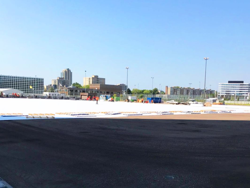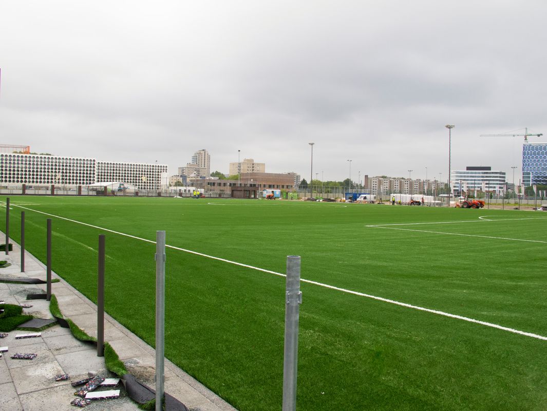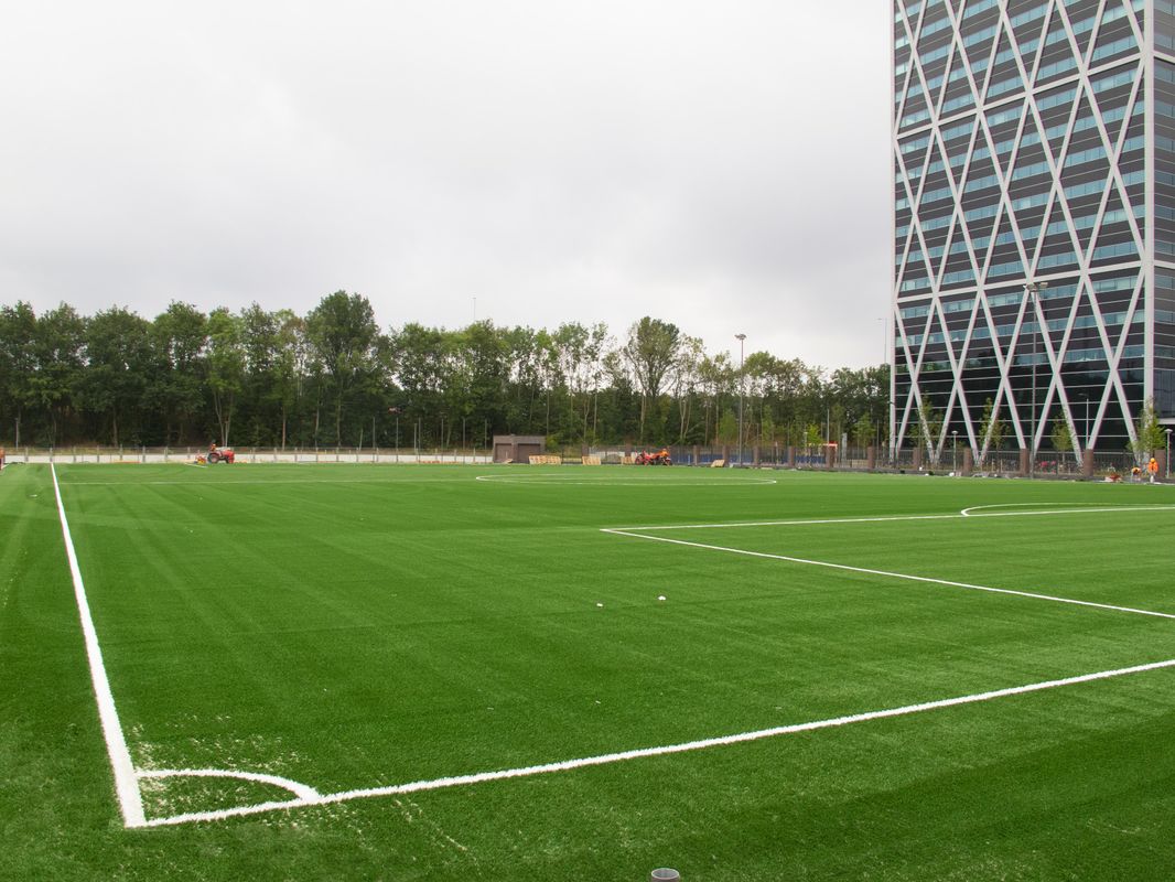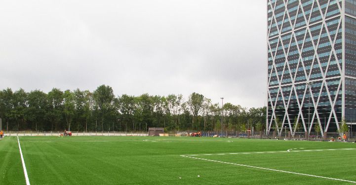 Op het dak van de parkeergarage Ravel op het Sportpark Goed Genoeg wordt één van de vijf nieuwe kunstgrasvelden van AFC Amsterdam aangelegd. Op basis van de te verwachten belastingen en de beperkte afwateringsmogelijkheden heeft Nophadrain samen met Royal Haskoning, De Gemeente Amsterdam en Van der Werff Infra besloten hier het ND 900hd Drainagesysteem toe te passen.