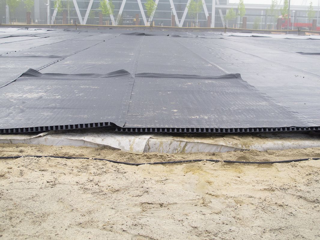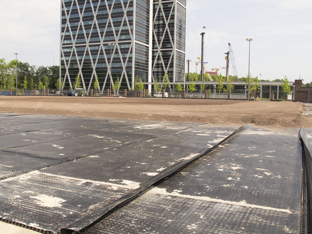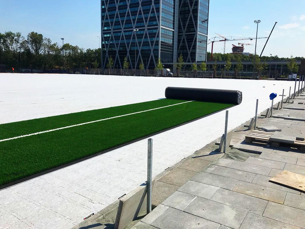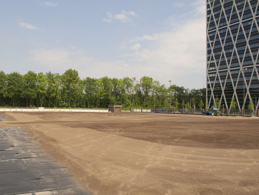Op het dak van de parkeergarage Ravel op het Sportpark Goed Genoeg wordt één van de vijf nieuwe kunstgrasvelden van AFC Amsterdam aangelegd. Op basis van de te verwachten belastingen en de beperkte afwateringsmogelijkheden heeft Nophadrain samen met Royal Haskoning, De Gemeente Amsterdam en Van der Werff Infra besloten hier het ND 900hd Drainagesysteem toe te passen.