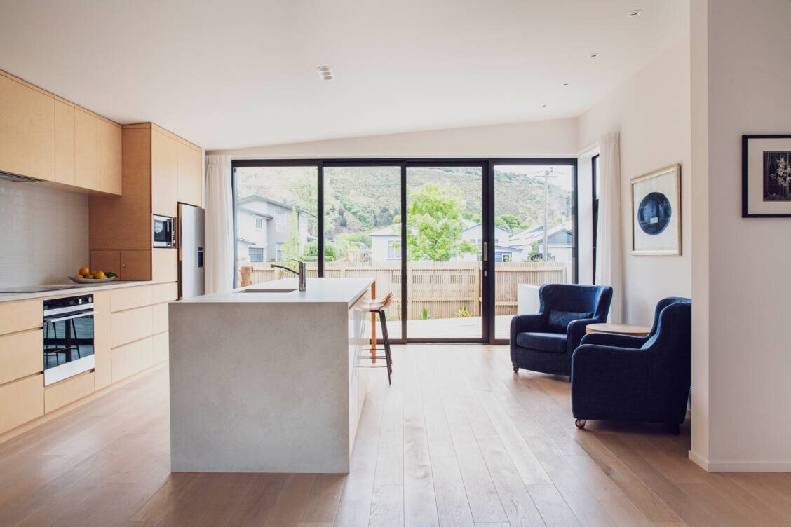 Comfort en licht in de dagelijkse routines werden benadrukt bij de planning van Sumner House in Christchurch. Het huis ligt op een overstromingsvlakte en moest daarom boven grondniveau worden gebracht.. De verbinding met de straatgevel maakt interactie met buren en voorbijgangers mogelijk, terwijl er toch een gevoel van veiligheid behouden blijft.. De externe materialen zijn gekozen vanwege hun onderhoudsarme karakter en de lange levensduur in de kustomgeving, waarin materialen snel verweren. Deze materialen omvatten geprefabriceerde Swisspearl panelen in een zilvergrijze kleur, een thermisch gemodificeerd houten regenscherm, cederhouten buitenplanken en vooraf afgewerkte stalen dakbedekking. Aangezien de Swisspearl panelen geprefabriceerd zijn en de houten vloercassettes en wand- en dakpanelen extern in het magazijn van de bouwer werden gebouwd, werd de totale bouwtijd tot slechts zes maanden geminimaliseerd.