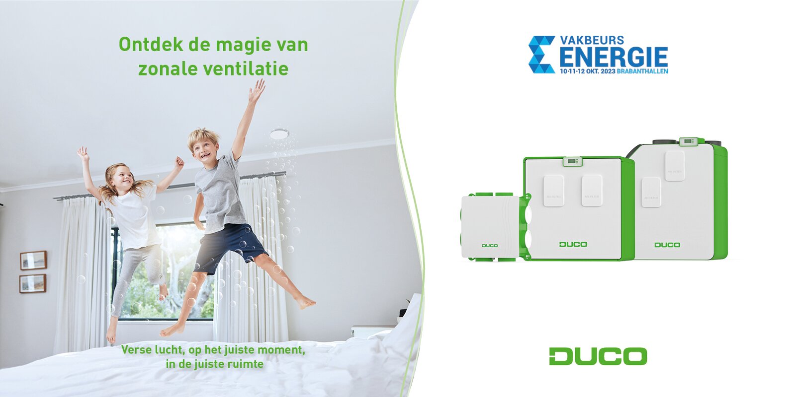 Ontdek alle oplossingen van DUCO en de echte magie van zonale ventilatie op Vakbeurs Energie. Het DUCO-team staat klaar in hal 3 stand A026 om jou met open armen te ontvangen. Ben jij al gebeten om een kijkje te komen nemen? Bezoek dan onze pagina en schrijf je gratis in!