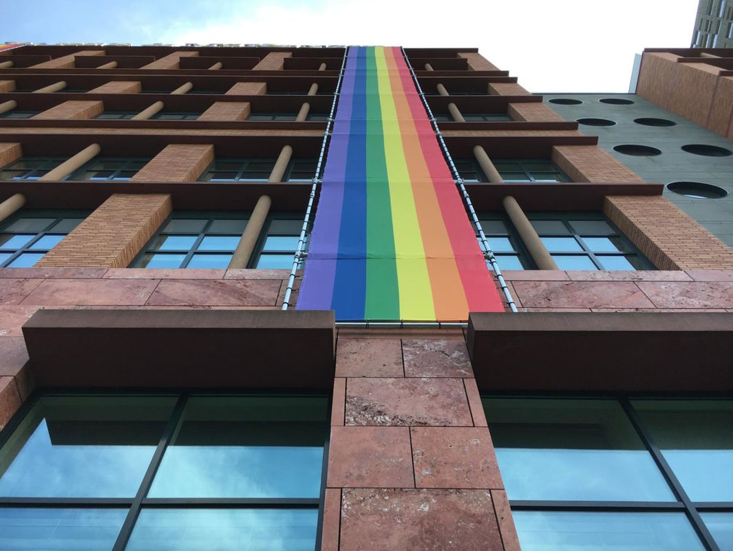 ‘Wat ik onbegrijpelijk vind is dat hotels tonnen besteden enkel aan de aankleding van hun lobby’s, maar als het op een mast aankomt mag het niet meer kosten dan € 500,-. Een mast is de drager van je medium voor de deur. Dat moet toch gewoon goed zijn? Gelukkig zijn er veel partijen die deze mening delen. Sterker nog, we hebben op twee na alle 5-sterrenhotels in Amsterdam mogen aankleden. Meest recent hebben we oplossingen mogen aandragen en uitvoeren voor het nieuwe Hyatt Regency Hotel en Sofitel Legend the Grand, beide in Amsterdam. Holland Mast is in staat vlaggenmasten te ontwikkelen die ook bij extreme windlasten representatief vlaggen mogelijk maken. Ons degelijke materiaal is de basis. Middels een rotatiemechaniek voorkomen we dat de vlag om de mast wikkelt of onsierlijk over de mast valt wanneer de wind plots gaat liggen. We maken voor iedere locatie een uniek systeem. Een bouwproject aan de kust vraagt om andere oplossingen dan een binnenstedelijk project. En toch kunnen we nooit 100% garantie bieden. Als de wind vijf graden anders op de gevel staat is het effect afwijkend ten opzichte van dat van de dag ervoor. We kunnen de natuur niet sturen, gelukkig maar zou ik bijna zeggen. Maar het spreekt voor zich dat we voor het hoogst haalbare gaan. In beheersing van het effect op de elementen en in de looks van het doek zelf. Vlaggen kunnen we vanzelfsprekend volledig customizen. Men koopt bij Holland Mast dus niet zomaar een stok en een lap, maar een oplossing met charme. En ja, een vlag vergt soms wat extra aandacht, maar een lichtbak moet je toch ook zo nu en dan van een nieuw lampje voorzien?’