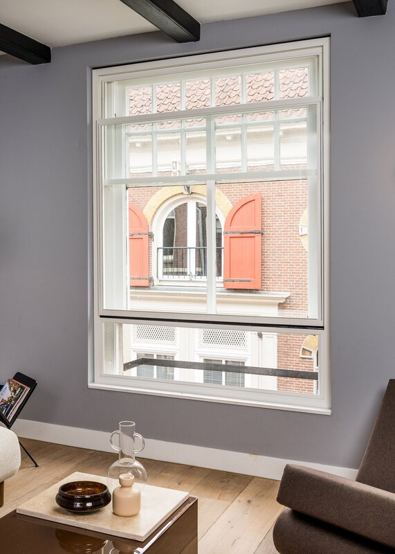 ‘Als je aan het verduurzamen van ramen denkt, denk je niet meteen aan voorzetramen. Wij niet in ieder geval niet.’ Toch kwam Rob na een korte zoektocht uit bij Topvoorzetramen. Niet voor niets, zo blijkt. ‘Na een bezoek aan website van Topvoorzetramen zagen we tot onze verassing dat dit bedrijf gespecialiseerd is in het verduurzamen van raampartijen van monumentale panden. We zochten direct contact en kregen kort daarna al bezoek van een van de experts in voorzetramen. Nico heeft ons de mogelijkheden voor ons huis uitgelegd en na een globale ingemeting ontvingen we binnen een dag de offerte. Na ons akkoord ging Topvoorzetramen voor ons aan de slag. Eigenaar Nico Pover en zijn aannemer kwamen voor een definitieve inmeting en zes weken later werden de twee schuifvoorzetramen voor de bovenverdieping en de twee uitneembare voorzetramen voor de benedenverdieping geleverd en geïnstalleerd.’