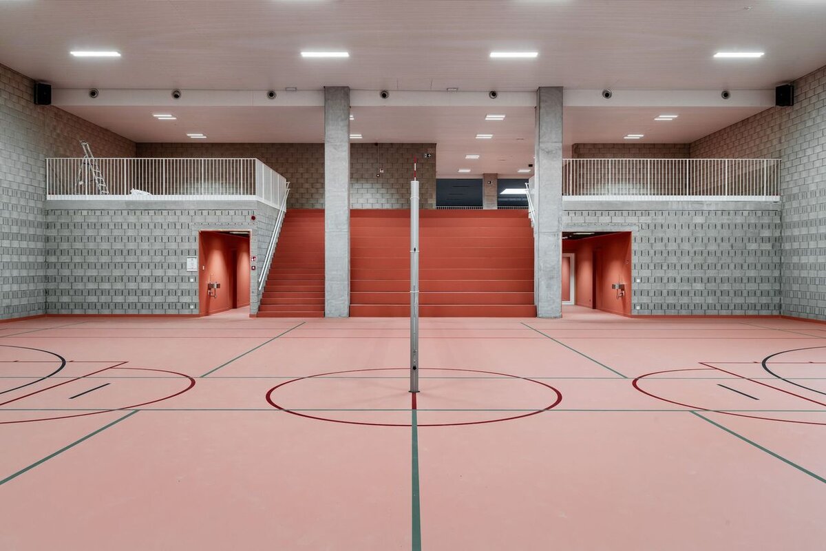 In de sportzaal van de Mutsaardschool in Brussel wordt functionaliteit gecombineerd met exclusief design. Soundblox akoestische betonblokken combineren constructieve stabiliteit en worden vanwege hun al vanwege hun robuustheid en “balvastheid” al jaren toegepast in ruimten waar constructieve stabiliteit net zo belangrijk zijn als een goede ruimteakoestiek. Nu voegen we daar ook het aspect: duurzaamheid aan toe met Soundblox Carbstone. Soundblox absorbeert niet alleen geluid maar ook CO2!