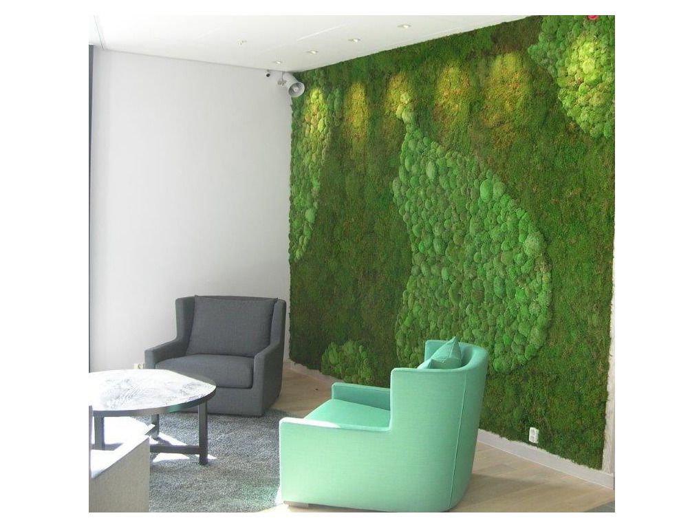 De geluidsabsorberende en –isolerende eigenschappen van Soundblox akoestische betonblokken in combinatie met dit 100 % natuurlijke mummiemos verenigt praktische constructieve stabiliteit met een natuurlijke uitstraling waardoor eigentijds design wordt gecreëerd. De wand heeft, behalve ademloze bewondering, niets nodig aan onderhoud, water of daglicht.