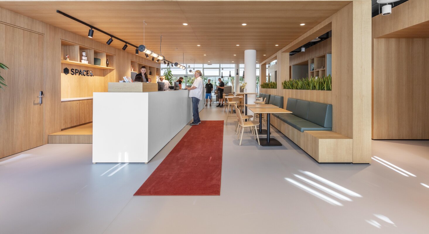 We ontmoeten Maarten Jamin in Spaces Westerpark, Amsterdam, onderdeel van IWG. Dit is een wereldwijd opererend netwerk van kantoren en ruimtes voor coworking en vergadering. Alleen in onze hoofdstad zijn er al tien locaties, in totaal zijn er bijna 3500 verspreid over de hele wereld en in Europa komen er in 2022 naar verwachting 1000 bij. Booming business, dus. Jamin is de interieurarchitect die verantwoordelijk is voor de inrichting van álle vestigingen van Spaces en de andere merken van de specialist in hybride werken: Regus, HQ en Signature.