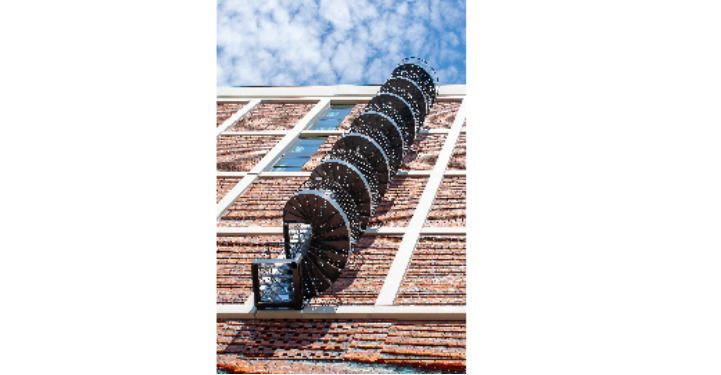 Spiltrappen aan de buitengevel woontoren Pisang (8e-16e verdieping / 8-hoog).