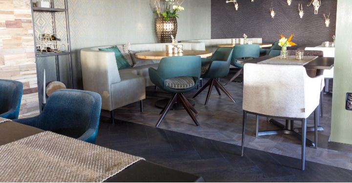 Wie denkt aan (Zuid-)Limburg, reflecteert dit meteen aan de natuurlijke pracht van de streek. Dit bewonderen kan je onder meer vanuit hotel-restaurant Gerardushoeve, dat zich kenmerkt door de unieke ligging op het plateau van Heijenrath (natuurreservaat en stiltegebied dat zich bevindt 215 meter boven NAP, tussen Epen, Slenaken en Gulpen). Epen, de thuishaven van dit stijlvolle etablissement, gaat er prat op de mooiste plek in het Limburgs Heuvelland te zijn. Terwijl je vanaf het weids panoramaterras kan zien hoe het Duits Eifelgebergte en de Belgische Ardennen harmonieus in elkaar overvloeien, zorgen de uitbaters in een gezellig en gemoedelijk kader voor gastronomisch genot. Ook het interieur speelt daar vanzelfsprekend een belangrijke rol in. De eigenaars lieten hun hotel-restaurant recent volledig renoveren. Architect Hans Kuijten liet daarin ook producten uit de Moduleo Impress-serie een vooraanstaande rol spelen.