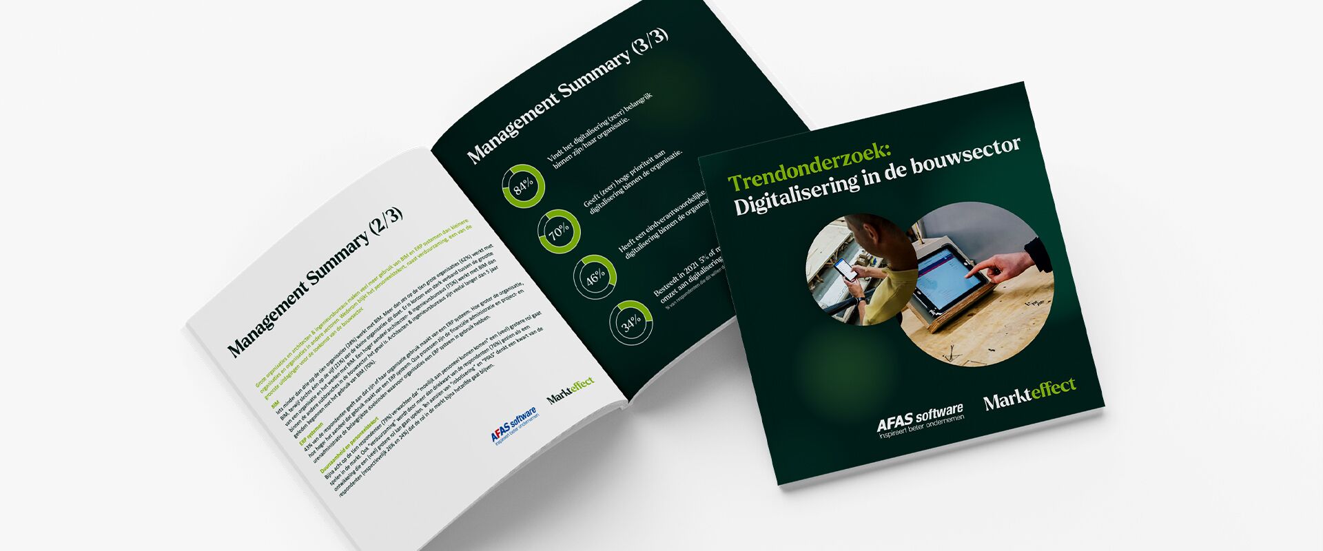 Het terugkerend Bouwonderzoek van AFAS en Markteffect is in 2021 gehouden onder 514 respondenten uit de bouwnijverheid, architecten en ingenieurs in Nederland. Met dit onderzoek wordt in kaart gebracht wat er zich afspeelt op het gebied van digitalisering en welke ontwikkelingen er plaatsvinden die de sector doen veranderen.