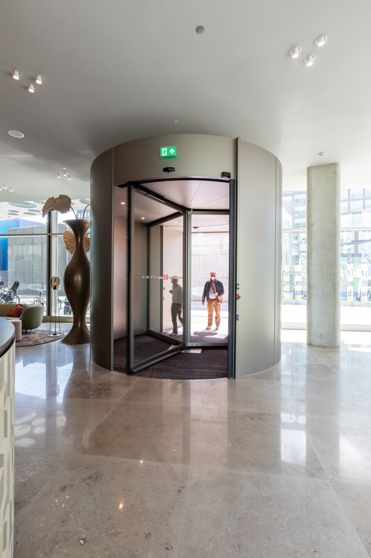 Tijdens de bouw van het Van der Valk Hotel Amsterdam Zuidas was duurzaamheid een belangrijk aspect waarbij onder andere het BREEAM Outstanding certificering is toegekend. Dit certificaat is het hoogst haalbare duurzaamheidscertificaat. De twee ruim 3,5 meter hoge Tourniket draaideuren van Boon Edam passen niet alleen perfect in het design van het gebouw, maar bieden daarnaast ook een grote bijdrage aan de energiebesparing met hun ‘altijd open, altijd gesloten'-principe.