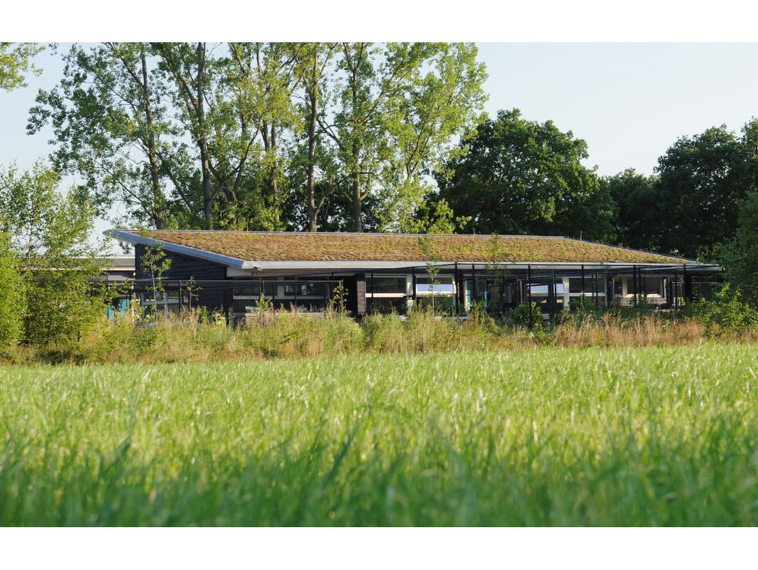 Een mooi vegetatiedak dat past bij haar omgeving! Door de natuurlijke dakafwerking gaat dit gebouw prima op in haar omgeving, namelijk het open veld bij Drachtster-compagnie.