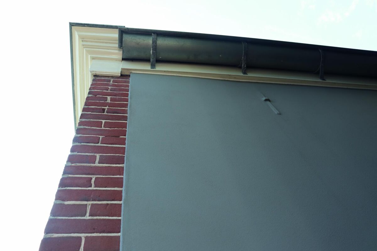 Een uiterst charmant monumentje. Feest om in te wonen, maar in de winter ook binnen een tikje guur, want de gang blijft ijskoud. Het is er erg smal, dus kiest de eigenaar/ bewoner er voor om isolatie aan de buitenkant aan te brengen. Maar hier is het een puzzel om de nauwe doorgang functioneel te houden en bovendien de originele details aan de gevel te bewaren. De oplossing: Bluedec.