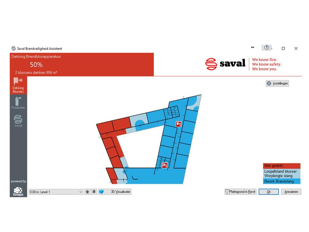 ‘We zijn een partij die al in het begin van een gebouwontwerp meedenkt met de architect. Daar ligt een groot deel van onze toegevoegde waarde. Of we meedoen aan BIM? Natuurlijk, die boot wilden we absoluut niet missen! BIM is de nieuwe standaard. Voorheen werden in een ontwerp even snel een cilinder en een slang ingetekend en daarmee was de kous wat betreft brandveiligheid wel af. BIM biedt daarentegen mogelijkheden waar iedere partij in de keten wat aan heeft. Plaats onze voorgemodelleerde producten met alle benodigde informatie in het model en wees verzekerd van de juiste informatie. Een verrijking voor het model,’ aldus Van Dijk. ‘We bieden een complete bibliotheek met onze belangrijkste producten. En we gaan nog een stapje verder. We hebben recent een app op de markt gebracht waarmee de architect de mate van brandveiligheid in het ontwerp kan toetsen. De app berekent het aantal vierkante meters in combinatie met de geselecteerde haspels en blussers en controleert of dit voldoet aan het Bouwbesluit. Zo zijn architect, opdrachtgever en eindgebruiker zeker van een optimaal brandveilig gebouw.’