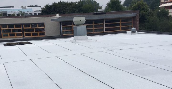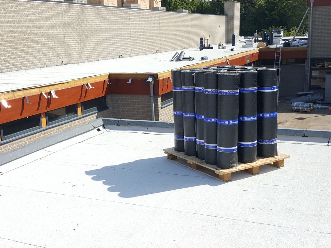 De school laat binnenkort opnames met een drone maken, vertelt directeur Peter van Esch. “Dat ziet er natuurlijk fantastisch uit, zo’n wit dak.” Bij de nieuwe dakbedekking is gekozen voor Sopralene Optima Ultra White D-tox van SOPREMA. “De Rolls Royce onder de dakbedekkingen”, zegt Bas Enning, commercieel technisch adviseur van SOPREMA BV.